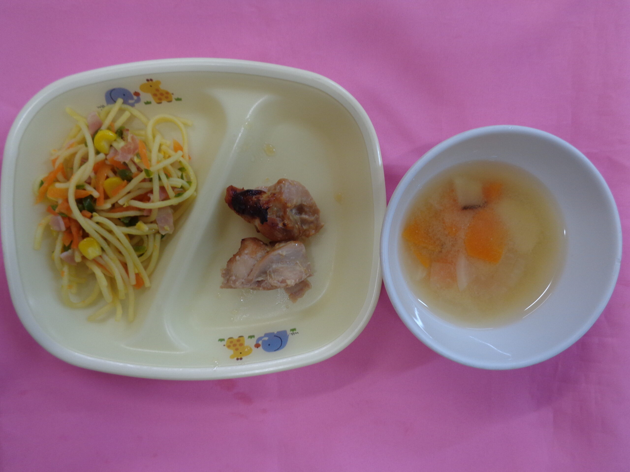 投稿日: 2026年1月13日 投稿者: hirooka1月13日の給食 今日の主菜は≪鶏肉の照り焼き≫です。鶏もも肉は、幼児の成長に欠かせない多くの栄養素を含んでいます。 まず、たんぱく質が豊富です。 たんぱく質は筋肉や組織の成長に必要な栄養素です。 また、ビタミンB群(特にビタミンB6)は、エネルギー代謝を助け、免疫力を高める役割を果たします。