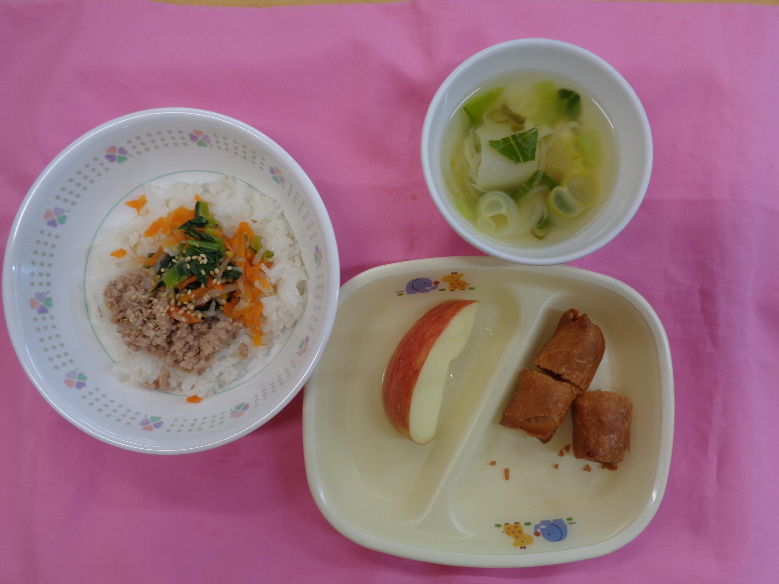 投稿日: 2026年2月26日 投稿者: hirooka2月26日の給食 今日の給食は≪ビビンバ丼≫です。ビビンバは日本でも馴染み深い韓国料理ですよね。「ビビム(비빔)=混ぜる」「パプ(밥)=ご飯」という二つの言葉が合わさっているそうです。野菜嫌いな子でもお肉やごはんと混ぜると食べやすい料理ですよね。